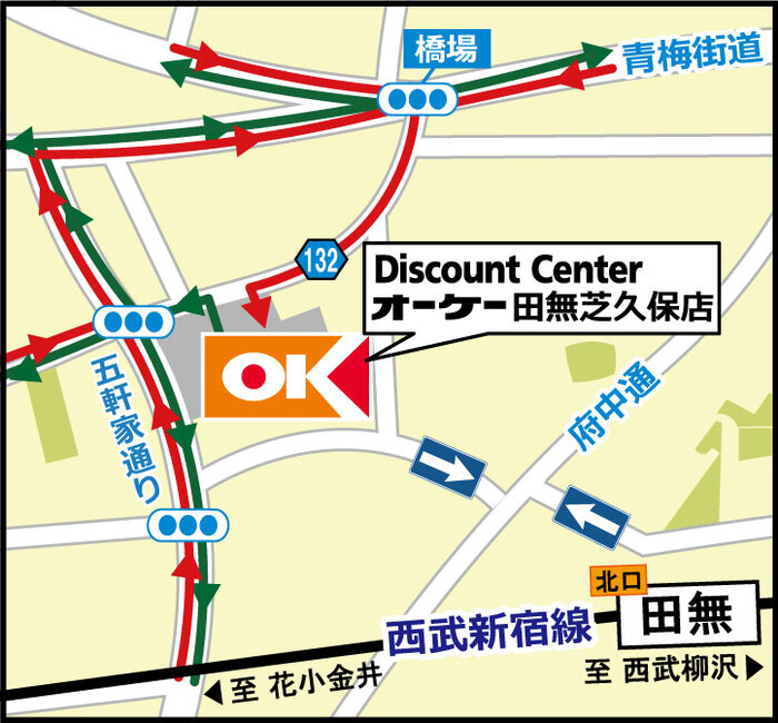 『高品質・Everyday Low Price』ディスカウントセンター オーケー田無芝久保店(東京都西東京市)のご案内です。店舗からのお知らせ、取扱商品、チラシ掲載商品、駐車場台数、地図、営業時間、電話番号、アクセス方法などを掲載しています。