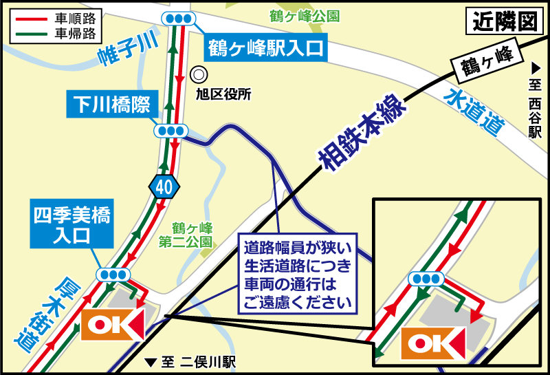 『高品質・Everyday Low Price』ディスカウントスーパーマーケット オーケー鶴ヶ峰店(神奈川県横浜市旭区)のご案内です。店舗からのお知らせ、取扱商品、チラシ掲載商品、駐車場台数、地図、営業時間、電話番号、アクセス方法などを掲載しています。