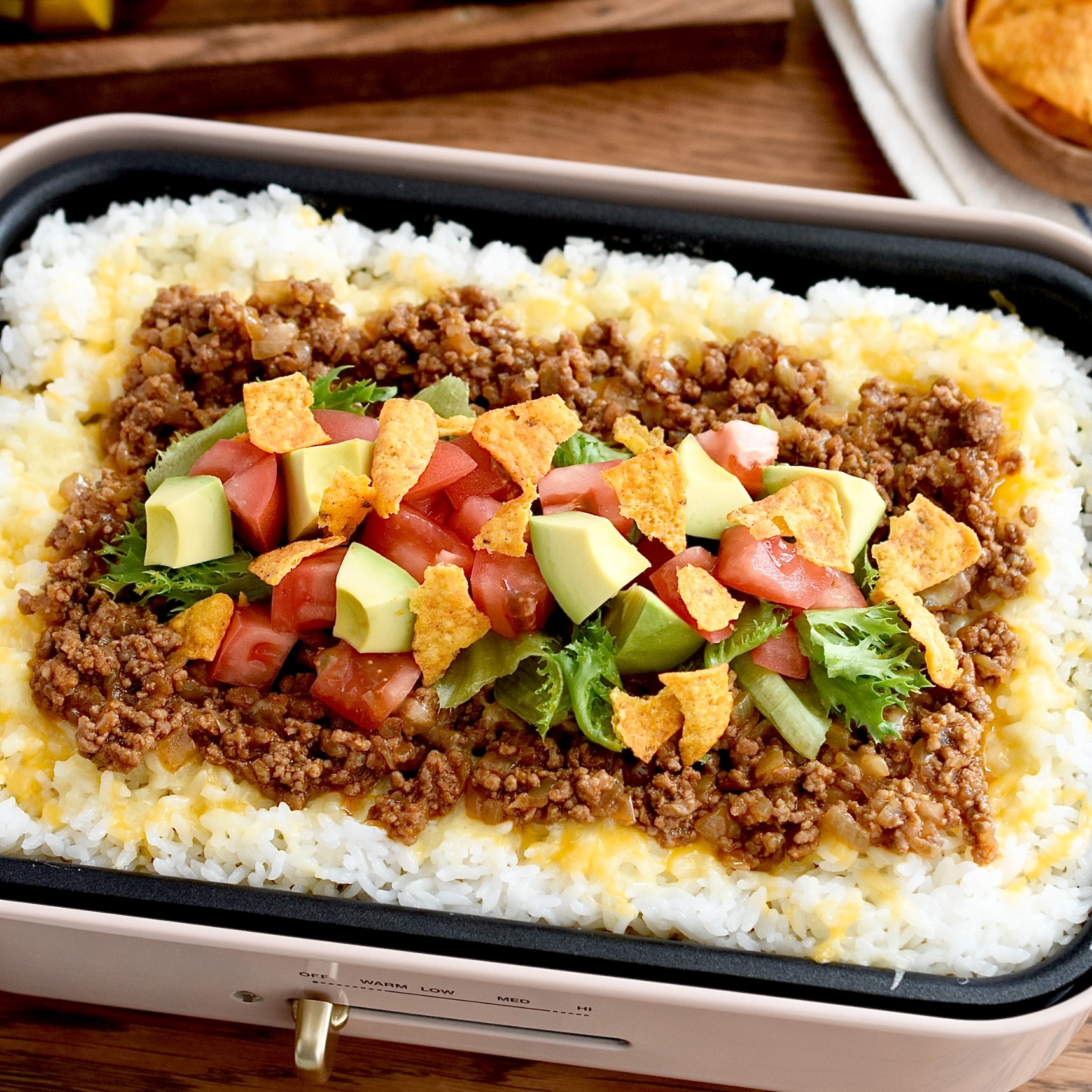 カリスマ主婦ブロガーつきさんこと長田知恵さんが提案!『ホットプレートで チーズとろとろタコライス』