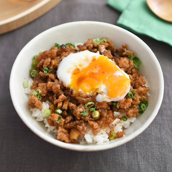 カリスマ主婦ブロガーつきさんこと長田知恵さんが提案!『スタミナそぼろ丼』 〔材料〕2人分 温かいごはん:2人分 豚ひき肉:200g しいたけ:3個 温泉たまご:2個 【A】 コチュジャン:大さじ1 しょうゆ、酒、みりん:各大さじ1 おろしにんにく:小さじ1 〔作り方〕 1.しいたけはみじん切りにします。【A】は混ぜておきます。 2.フライパンを中火で熱し、挽き肉と しいたけを炒めます。 3.肉の色が変わったら【A】を加え、全体に絡めます。 4.ご飯をよそった器に【3】をのせ、温泉たまごをトッピングして完成です。(糸唐辛子はお好みで)