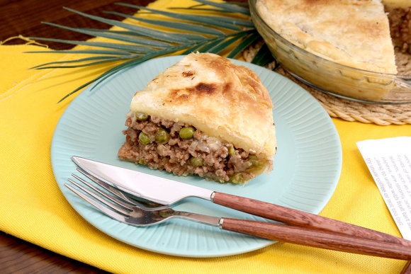6.パイ生地の端に水をつけ、残りのパイシートを上から被せ、上と下のパイシートが引っ付くように端をしっかり抑えます。