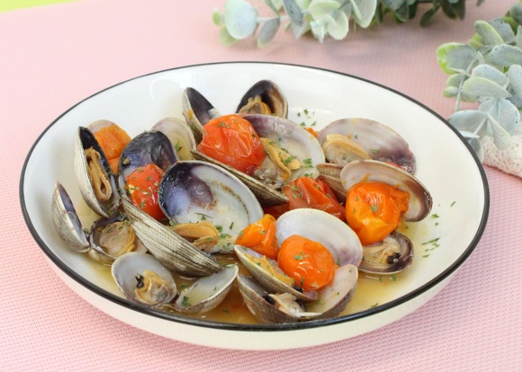 あさりとミニとまとの白ワイン蒸し