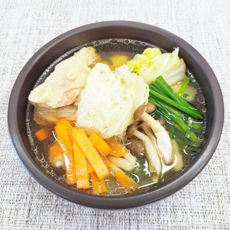 大根ツマを使った寄せ鍋 〔材料〕3~4人前 大根ツマを使用した5品目の鍋用野菜セット:1袋 お好みの鍋つゆ(寄せ鍋がおすすめ):1袋(800~1000ml) お好みの具材(鶏もも肉がおすすめ):お好きな量(写真は鶏もも肉300g) 〔作り方〕 1.鍋に鍋つゆを入れ、火にかけて沸騰させます。 2.野菜セット・お好みの具材を鍋に入れて煮込み、具材に火が通ったら完成です。 ※大根ツマの食感を活かす場合は食べる直前に大根ツマを入れるとシャキシャキ感がお楽しみいただけます。