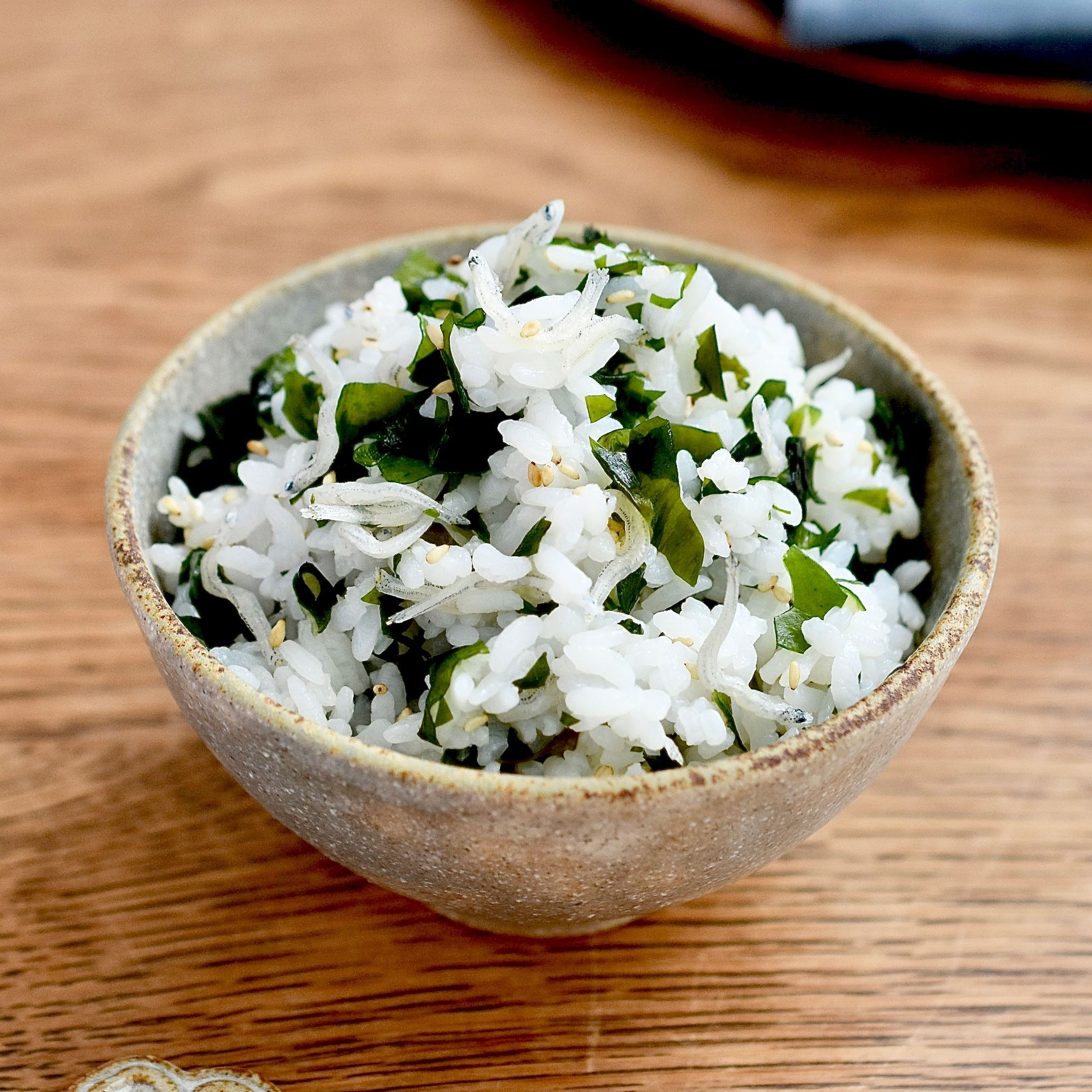カリスマ主婦ブロガーつきさんこと長田知恵さんが提案!『地味においしい♩じゃこわかめごはん』 〔材料〕2人分 あたたかいご飯:2合 乾燥わかめ:8g ちりめんじゃこ:30g 白煎りごま:適量 塩:少々 【A】 白だし:大さじ2 みりん:大さじ1 砂糖:小さじ1 ごま油:小さじ2 〔作り方〕 1.ワカメは水で戻して水気をしっかり絞って細かく刻み、フライパンで炒めて水気を飛ばします。 2.【A】を加え、汁気が飛ぶまで炒めます。 3.温かいご飯に、【2】とちりめんじゃこ、 白ごま、塩を加えてさっくり混ぜて完成。