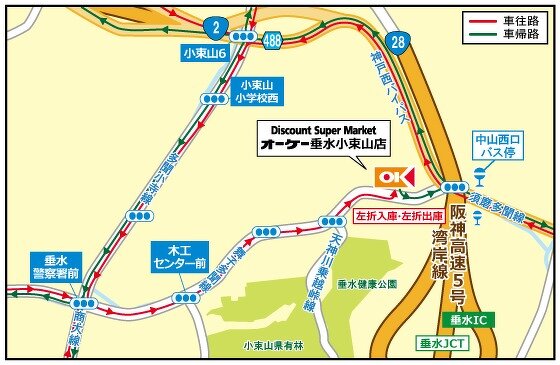 『高品質・Everyday Low Price』ディスカウント・スーパーマーケット オーケー垂水小束山店(兵庫県神戸市)のご案内です。店舗からのお知らせ、取扱商品、チラシ掲載商品、駐車場台数、地図、営業時間、電話番号、アクセス方法などを掲載しています。